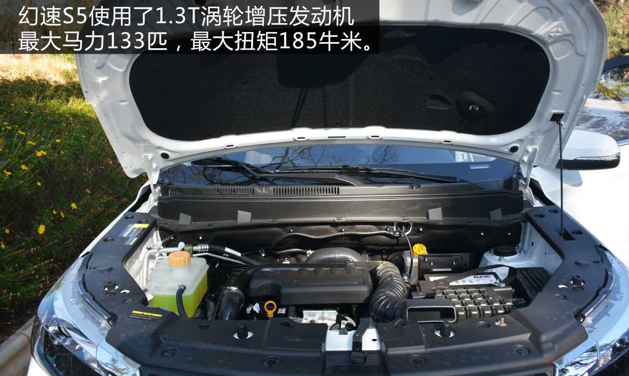 北汽幻速S5共有1.6L和1.3T的动力,试驾的车型搭载的是1.3T涡轮增压发动机,最大功率133马力,最大扭矩185牛米。匹配5速手动变速箱。