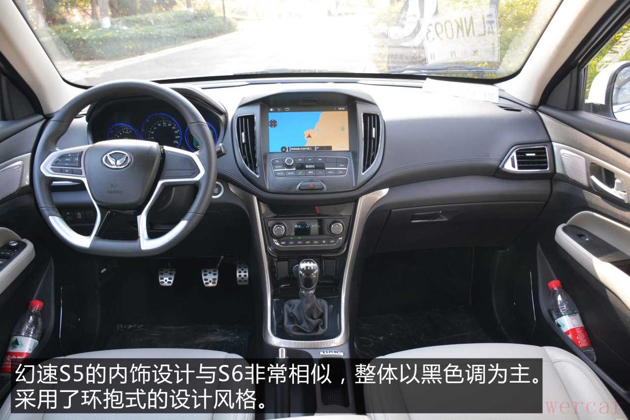 幻速S5的内饰与S6比较相似,采用了黑色中控,米色座椅的搭配。并且内饰风格采用了环抱式设计,也符合时下的流行趋势。中控台上部使用了软质材料包裹,用料也比较厚道。