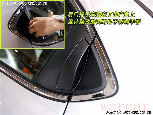 奇瑞A3有个特别的设计,那就是它将后门把手设计在了车窗的后部,如果你是第一次看到它,也许不会马上就发现到这个细节。或许该设计并没有什么先进性可言,但别具一格的视觉感受以及使用效果才是挺不错的。