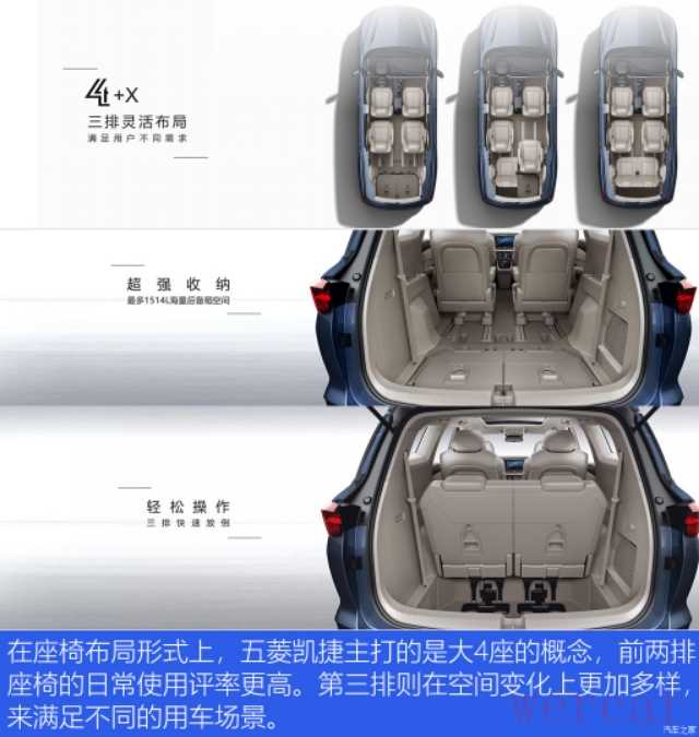 最后,再看看时下造车界的流行手法:各种大屏幕、配置的堆砌、软性材质的应用、空间尽量做大、内饰尽量做得豪华等等。这些流行手法我们都知道,我想五菱更知道。所以,凯捷做到了。这就是我说的“拿来主义”,不是说这么做不对、不好。好的东西和经验就应该拿来用。就像凯捷的外观、后备箱、大空间正是打动我的点。但是,我想说:“你什么都拿来用,什么都捡现成的,如何成为国产一线品牌”!