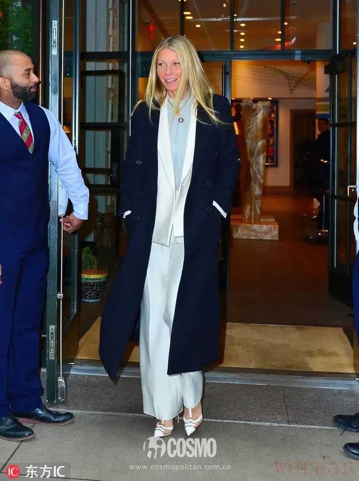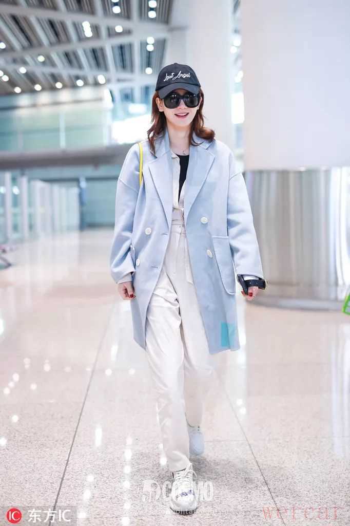 蓝色和白色是绝美搭配,两个浅色加起来就很简单柔和。像小辣椒这样白西装内搭浅蓝色衬衫,再外穿深蓝色大衣,有层次感的颜色搭配显得更有气质和心思。