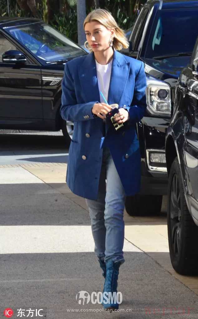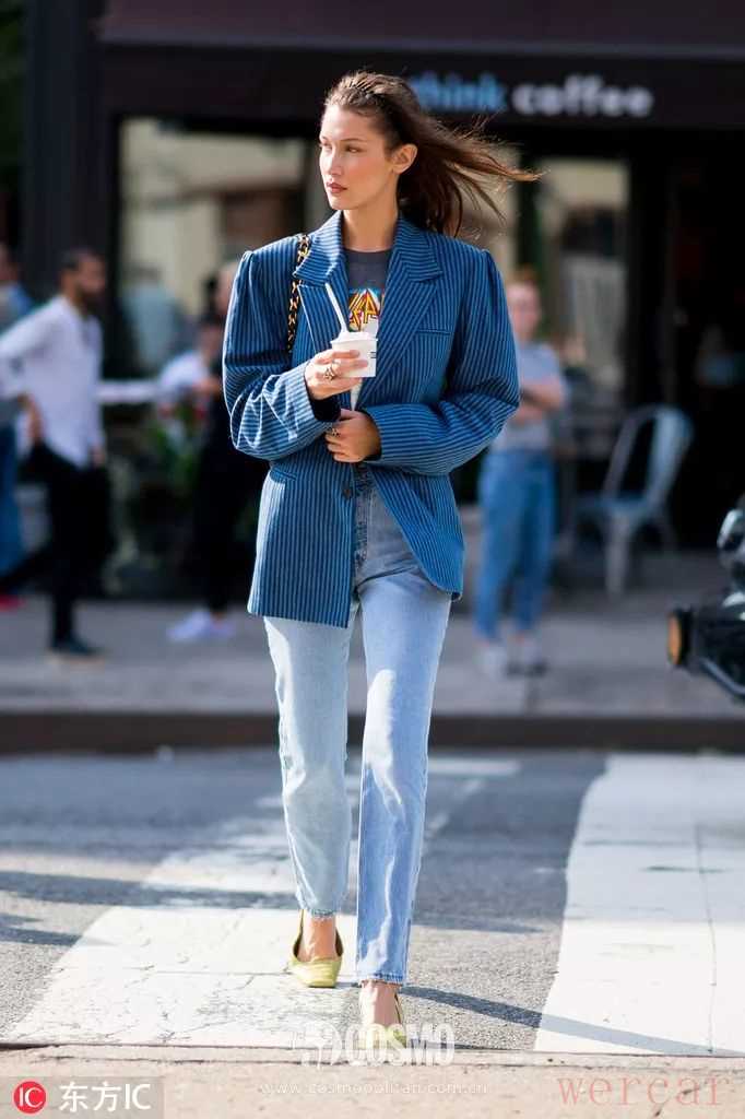 蓝色的穿搭反而能变得更特别,像海狸和Bella都是平日爱挑西装外套穿星人,蓝色自然也逃不开她们的pick,平日上街最适合不过。