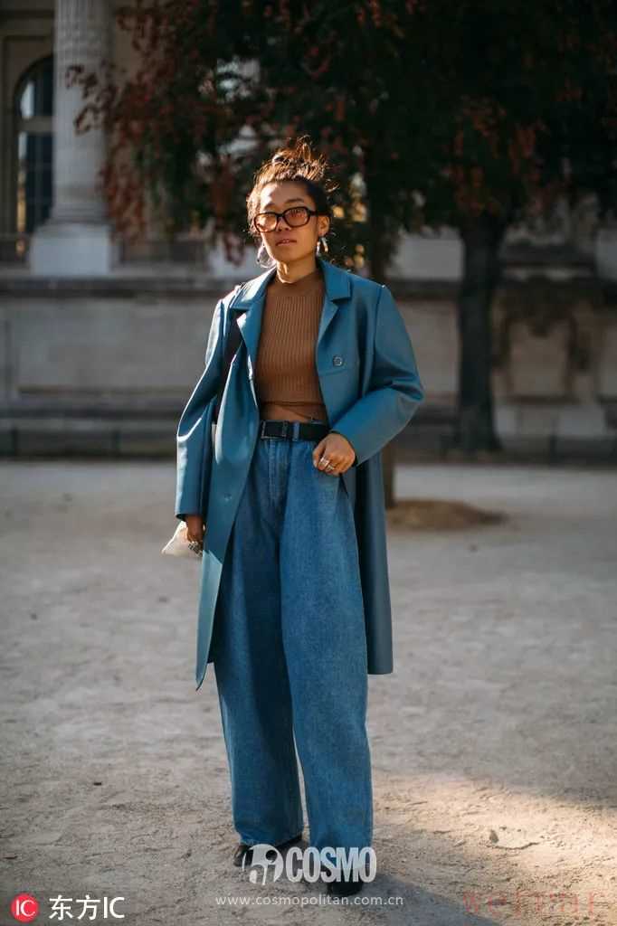 雾霾蓝的各种单品配上大地色也不显得奇怪,内搭吸睛,大衣更有风度和高级感。