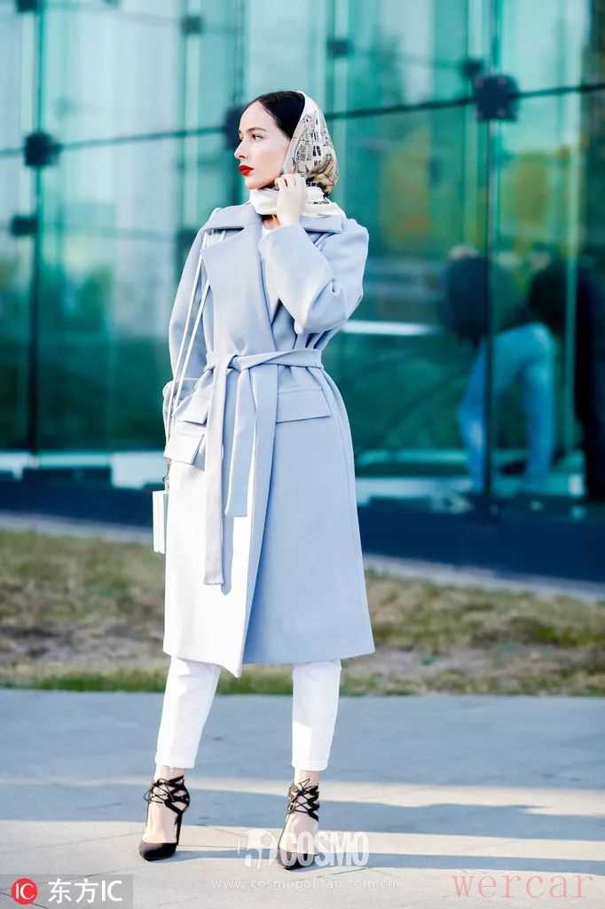 蓝色的大衣搭白色更简洁,也很有活力,同时能提亮肤色,白皮妹子穿上真的会hing显白!