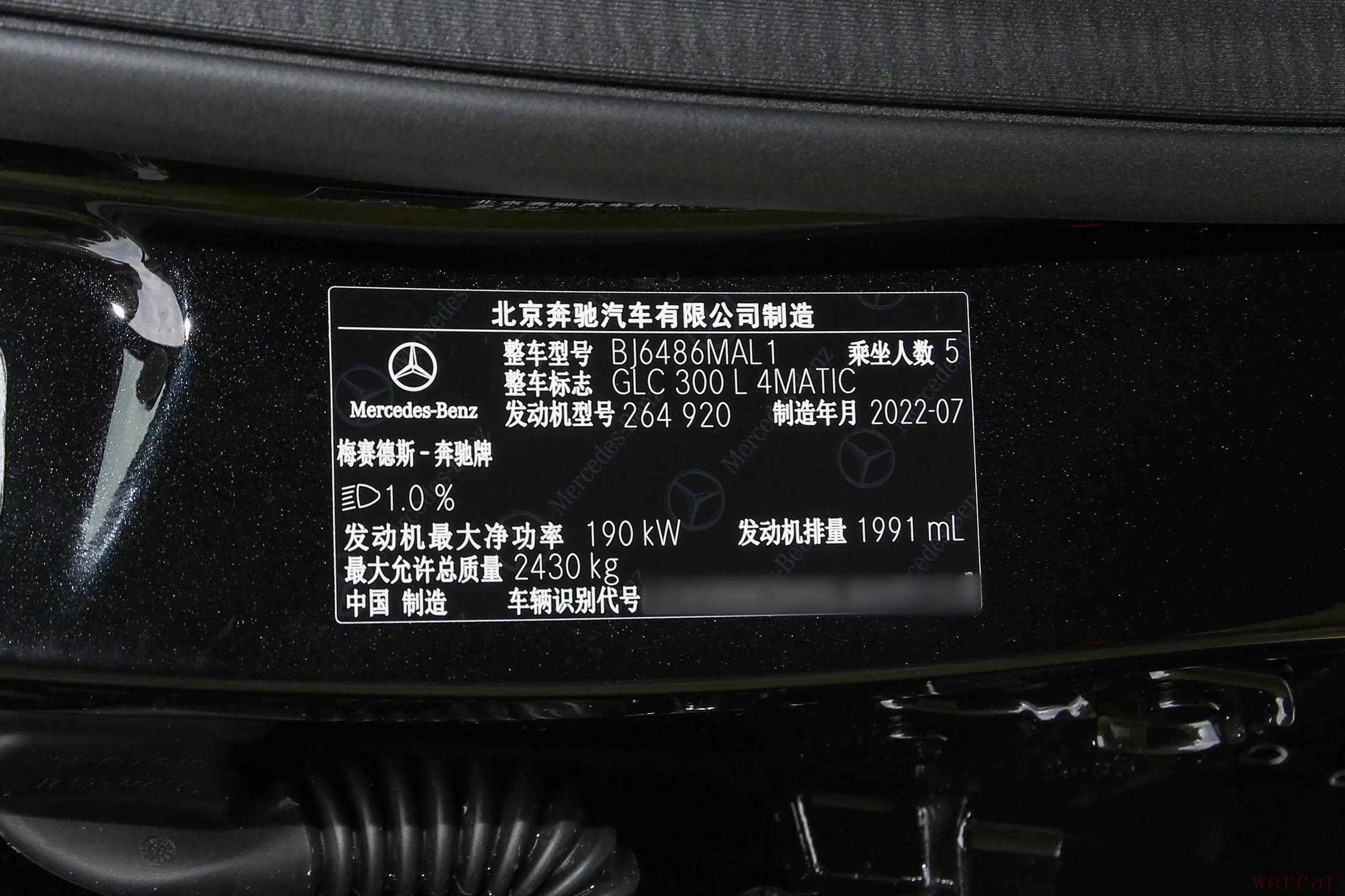 奔驰GLC 2022款改款 GLC 300 L 4MATIC 动感型臻藏版本,搭载一台2.0T涡轮增压发动机,有着258马力、扭矩最大370牛.米,传动系统9挡手自一体变速箱,车速最快235km/h、破百加速6.9S、NEDC综合油耗8.2L/100km、油箱容积66L。