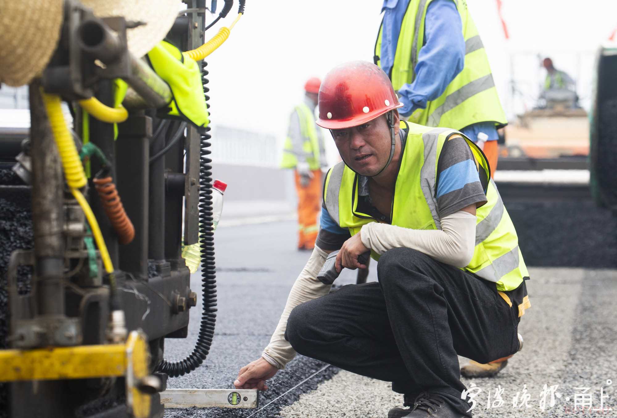 说话间,厉宗南汗如雨下张银飞,今年31岁,老家在河南。他驾驶着沥青摊铺机缓缓地倾倒着沥青。“沥青摊铺车属于特种作业车辆,对行驶速度有严格要求,面层行驶速度要求3米/分钟,底层要求4-5米/分钟。”问起这项工作的感受,他笑着说:“工作时就像‘蒸桑拿’,没多久衣服就湿透了,这种工作环境下,就更加需要耐心和细致。”