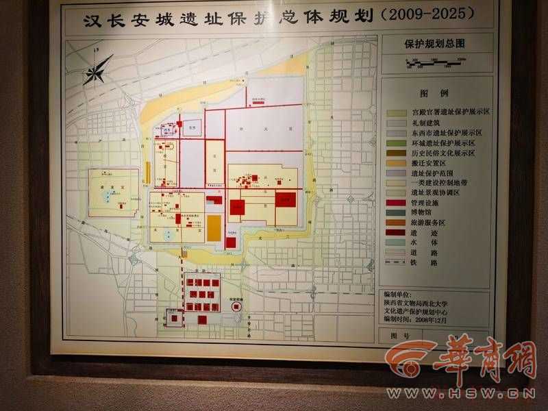 在陈列室内,有一张汉长安城遗址保护总体规划图。
