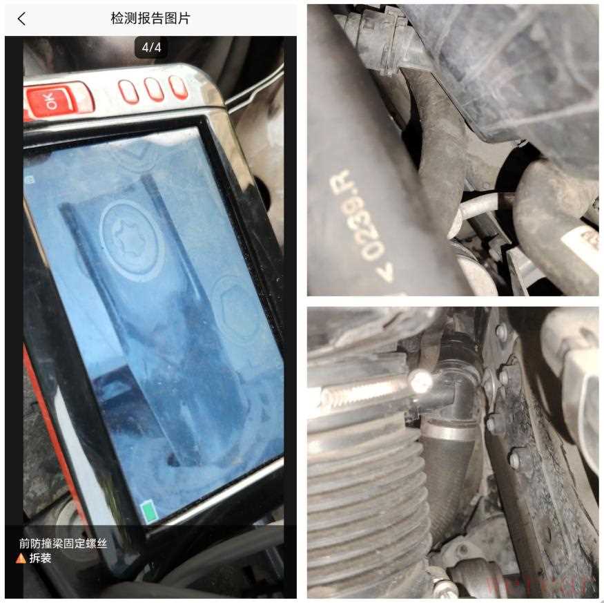 接着往下检测,发现中网、水箱框架固定螺丝都有拆卸。
