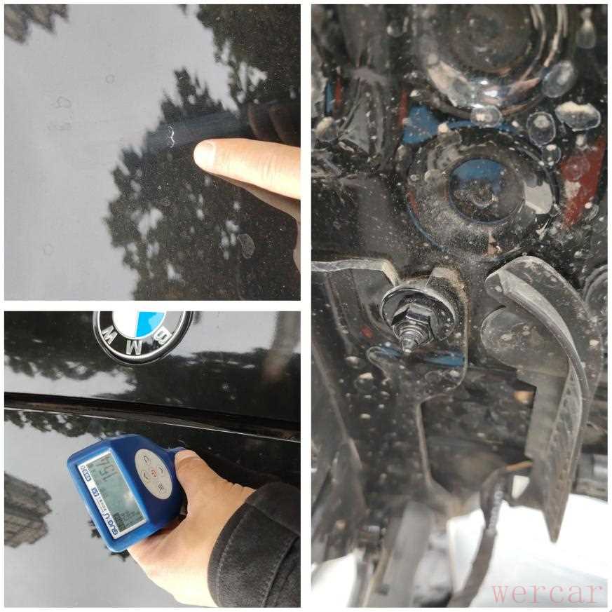 先看机盖,漆还是原厂的,上面有一个石子崩到的小印子,机盖固定铰链螺丝有动过,没啥大问题;