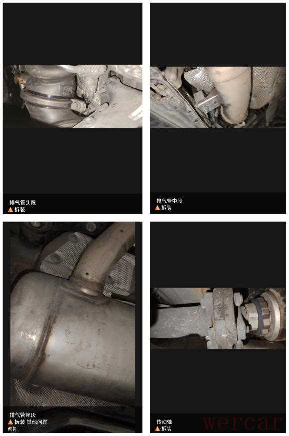 接着又看了下排气管头段、中断、尾端固定螺丝均有拆卸,卖家解释说了改了排气。但是传动轴也拆装了,刚好排气管就在传动轴的下面,判断因为拆传动轴才拆的排气管,正常改排气只改尾段就可以。