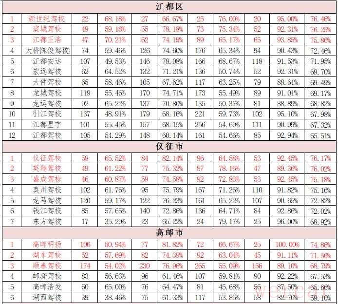昨天(17日),扬州公安交警发布2023年9月全市各大驾校排名情况: