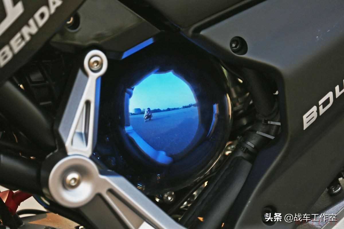 饱满的油箱线条,16升的油箱容积,油箱外壳两侧的通风口,为热量的散发提供辅助,同时也让高速时气流流经车体更为迅速。