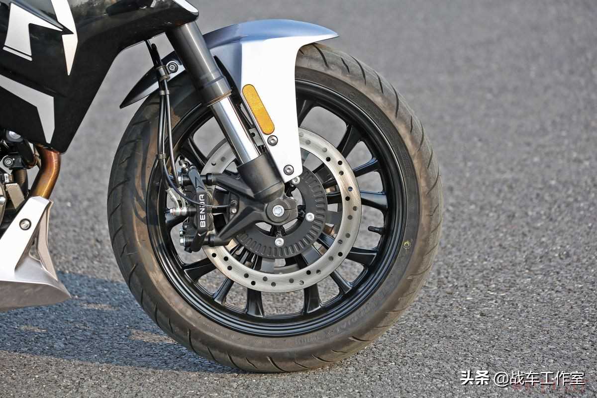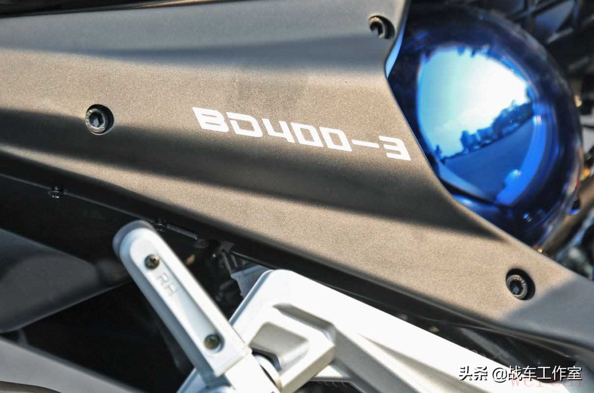 当然,阿修罗400的心脏,是奔达的异步并列双缸四气门水冷引擎,排量389cc,67mmX55.2mm的缸径行程比,俨然意味着这是台高转引擎。