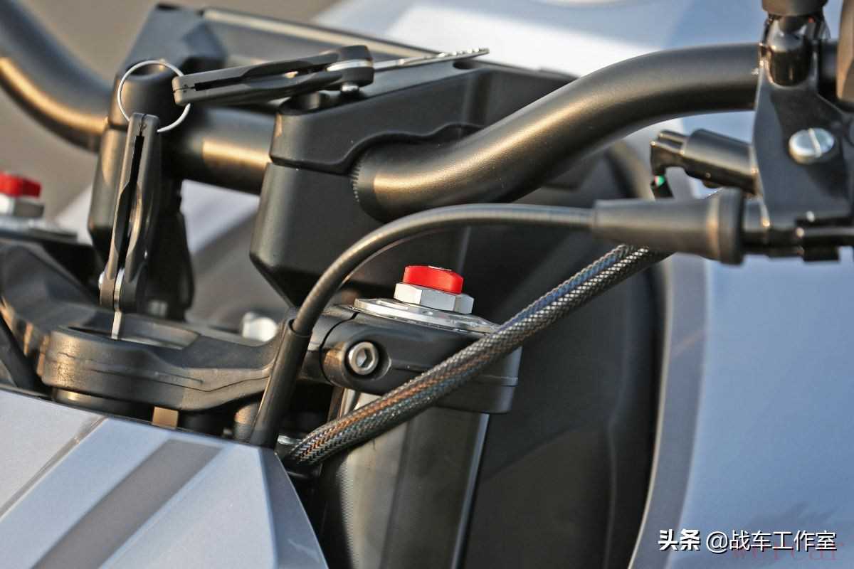 将仪表置于车把后方,已经成为奔达的特色,从BOX400上就已经如此设计。巨大的转速表和右上角的档显,易于观察数据。左侧的水温、燃油存量指示,也方便读取。