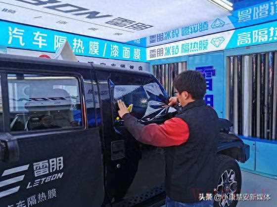 图示:工作人员为陈先生免费换贴雷朋隔热膜