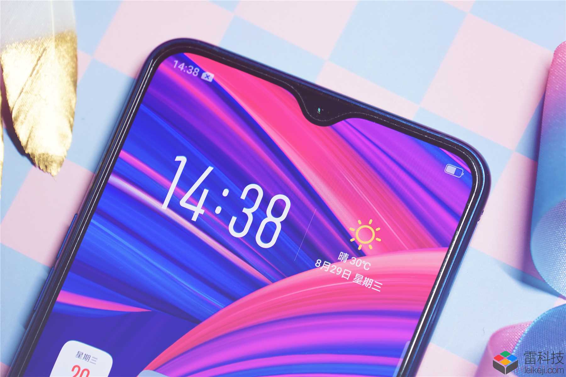 这块屏幕的材质和R15一样,都是AMOLED,但造型从R15的小刘海变为通过曲线构成的水滴,优点是视觉过渡更加自然,且提升显示区域大小。