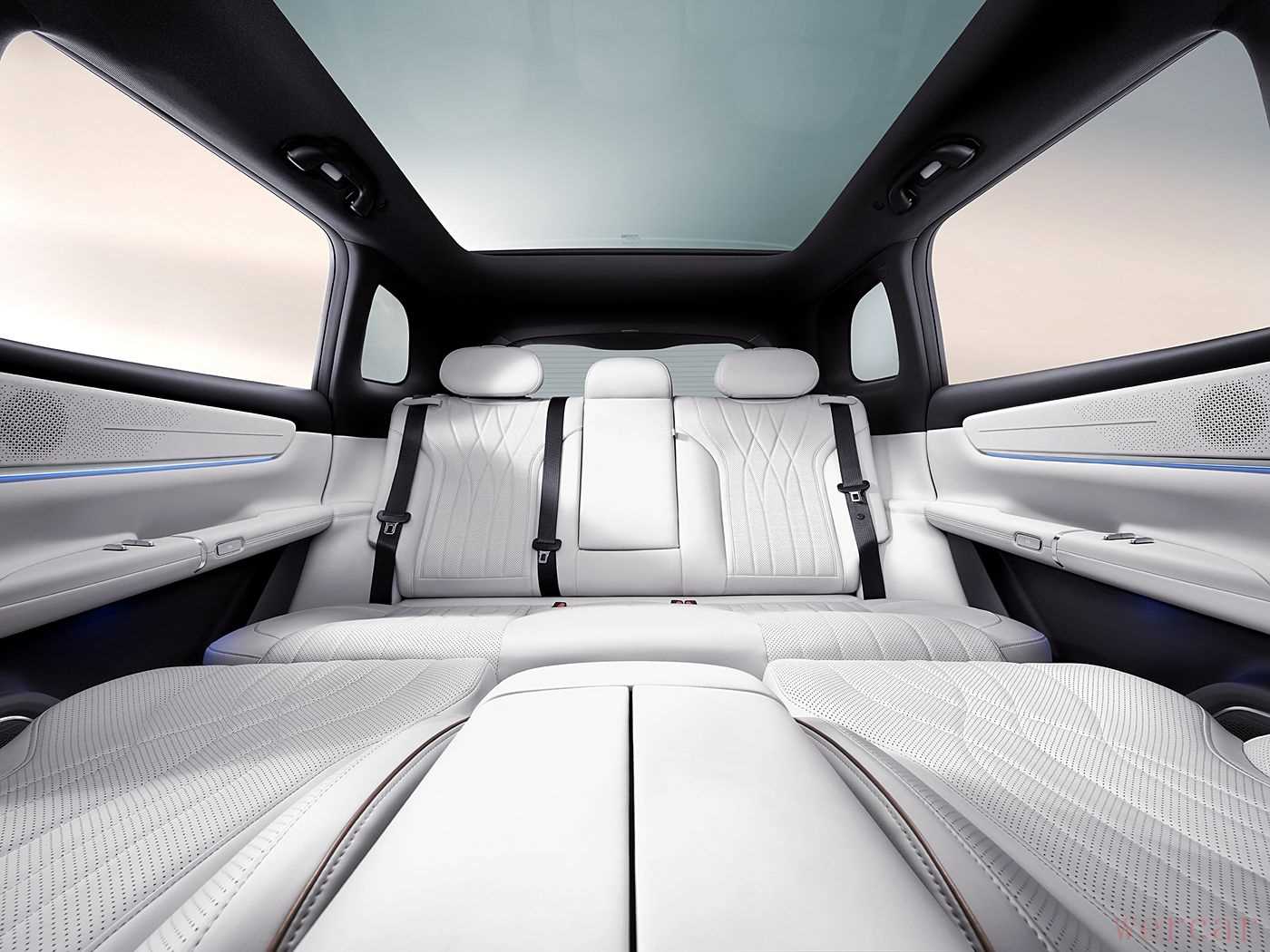 空间方面,后排空间很宽敞,后排地板也很平整,前排座椅支持加热/通风/按摩,后排座椅支持加热/通风,还配备了后排小桌板。值得表扬的是,该车的后排座椅支持靠背调节,想要坐直和半躺都可以。它的前排座椅可以180度放倒,与后排座椅组成沙发床。
