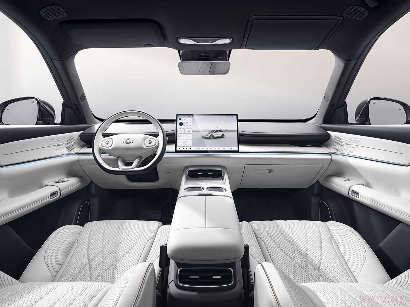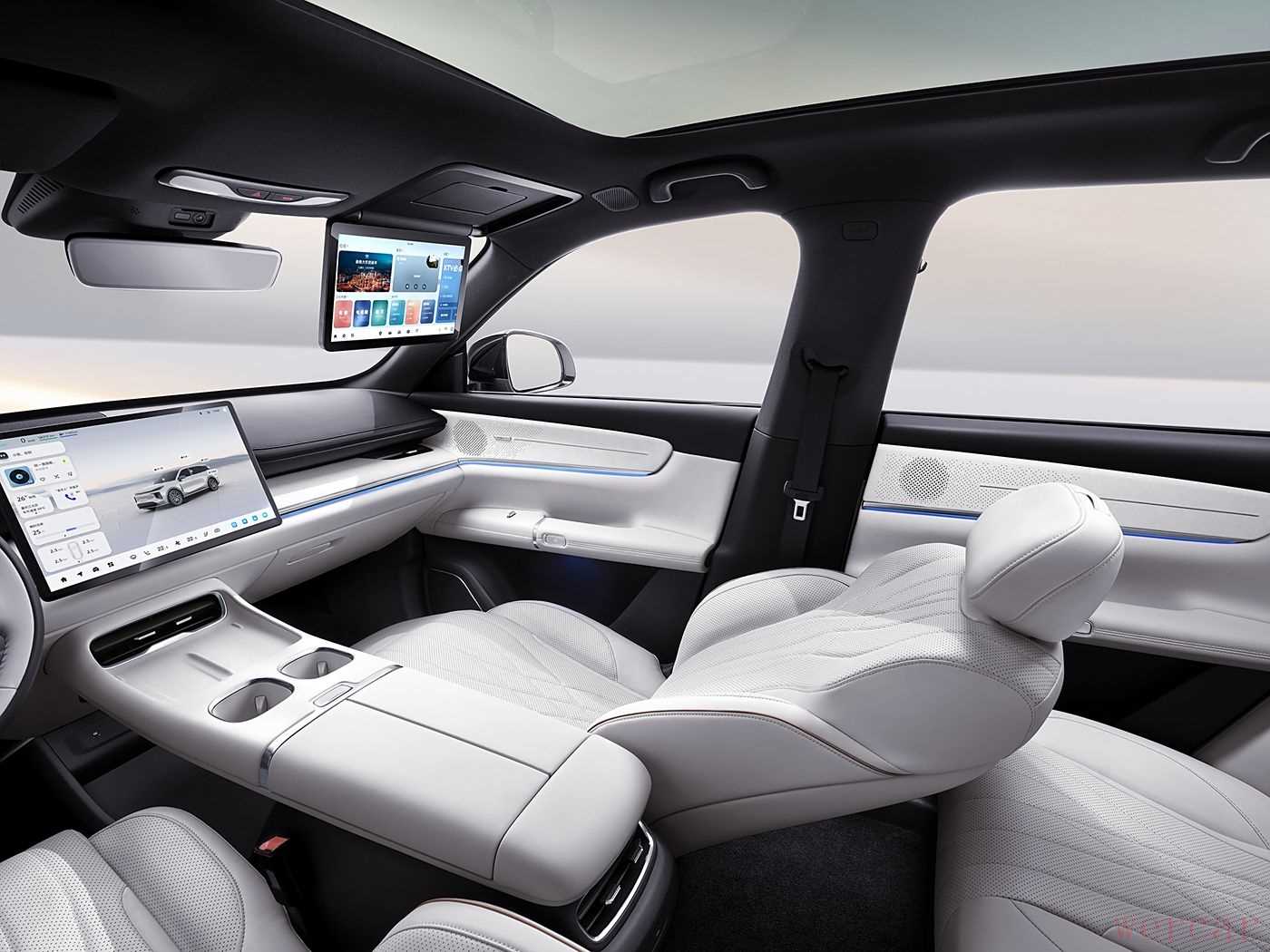内饰方面,该车不提供仪表盘,但却配备了49英寸的AR-HUD投屏,并且是全系标配,还配备了15.4英寸的2.5K中控屏幕,顶配车型的副驾化妆镜位置,还配有一块12.8英寸的娱乐屏幕,并且副驾座椅支持一键零重力模式,感觉这才是这款车的VIP座椅。