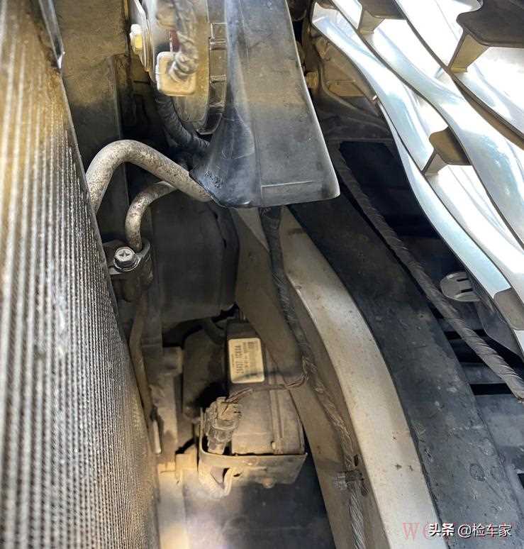 两前大灯没有更换,但是水箱上横梁固定支架拆卸,这是前部事故撞的吗?再看看水箱和周边,能看出这是后更换的全铝水箱。见我在这里观察半天,车行老板过来说车收过来发现水箱漏液,就把水箱换了。好吧!你说你的,我继续检测我的!看看前部到底有无事故还是车行老板所说的那样。