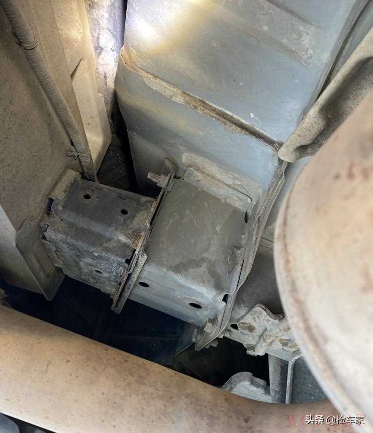 后部防撞梁无碰撞变形,固定螺丝无拧动拆卸,纵梁及周围围板无碰撞褶皱修复痕迹,表面平整自然完好无损,结合之前的检测情况可以排除后部追尾事故的嫌疑。
