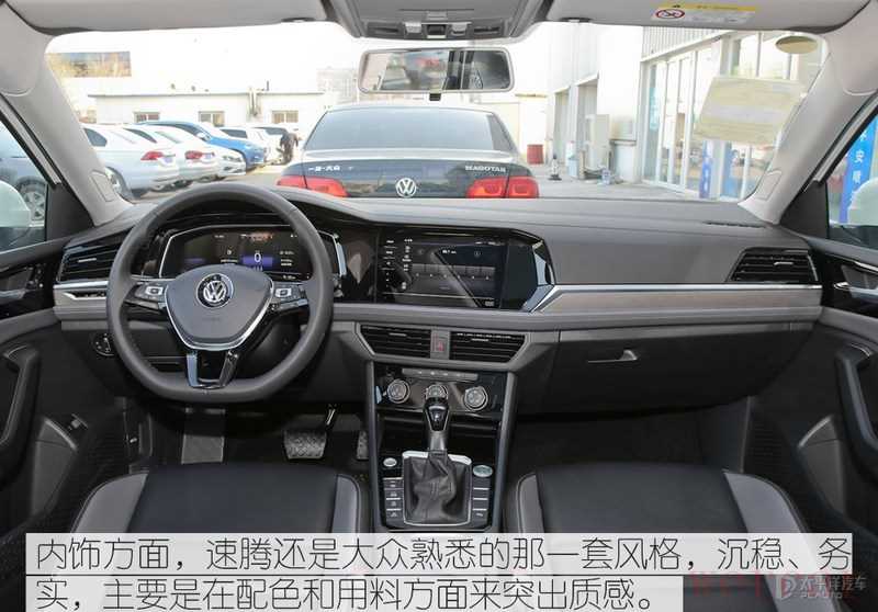 速腾的内饰仍然是熟悉且经典的大众式风格,在设计方面会略显老气。但值得一提的是,速腾在细节方面还是下了点功夫,内饰用料不错,比如它使用了钢琴黑漆面板、搪塑面板,并且还有双色内饰可选,用料精致度看得出是花了心思。