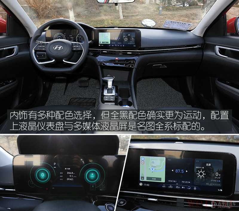 运动和年轻化依旧是全新名图内饰不变的主题,全黑配色搭配底部扁平的方向盘让人很有驾驶的欲望,它也提供不同的颜色搭配,所以个性化不会缺失。此外,12.3英寸液晶仪表盘与多媒体液晶屏都是全系标配的,即便是低配车型也不用担心。值得一提的是全新名图的车机系统在处理速度和功能丰富程度上,我认为是合资品牌中做得最好的,当你用语音控制导航几乎无需等待就可以快速搜索导航路线,这个效率已经超过了手机导航。