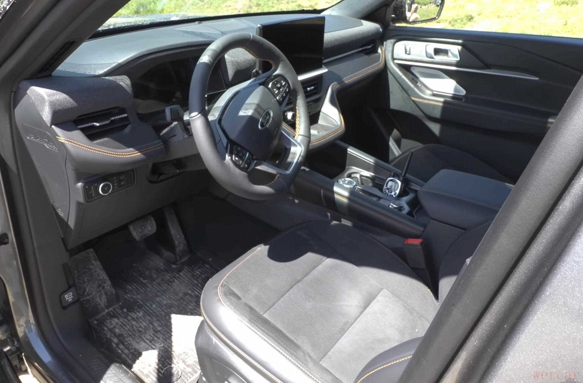 内饰部分,探险者Tremor配备有12.3英寸数字仪表盘和13.2英寸触摸屏,在中控台、座椅、副仪表台等细节使用橙色缝线装饰。此外,该车还配备有360度全景影像,提供14个扬声器Bang&Olufsen音响系统以及按摩座椅可选。