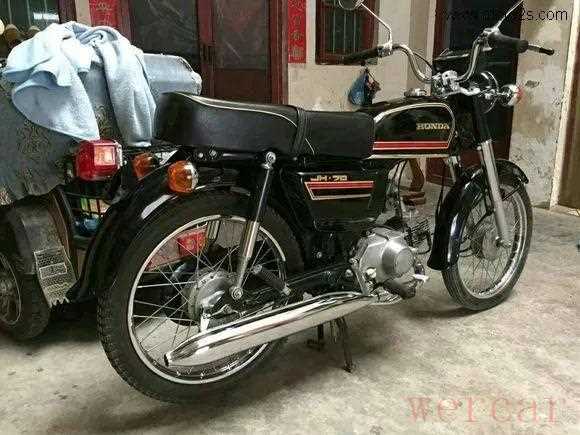 - 嘉陵本田70,有粉红、军绿、纯黑、天蓝四种颜色。黑色生产的最多,蓝色比较少见。最初的车型都是小油箱,一体式座椅,有少部分带后货架。此时期生产的大多是进口件组装,这也是后来人们一直热炒这批摩托的原因。后期改进款加大了油箱容积,发动机也使用了部分国产件,价格也拉低了一些,但质量也不如从前了。