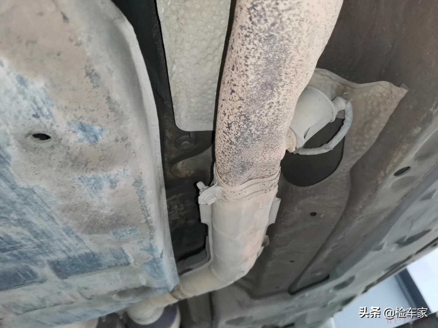 排气管有剐蹭,底盘轻微托底,但目前来说并不会影响使用,只是存在排气管中尾段连接处轻微变形。