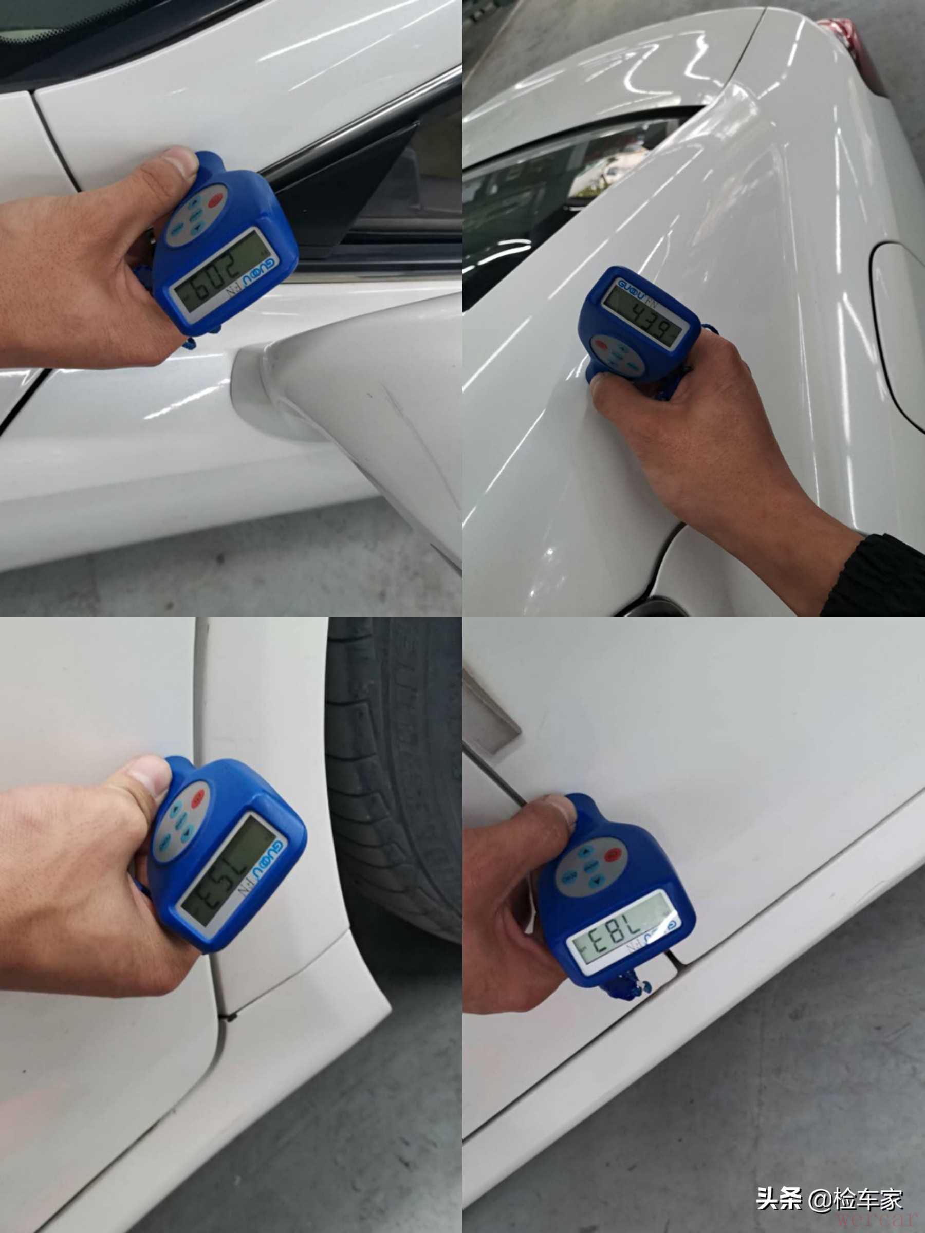 当看到门槛内侧和左后翼子板底部这里的数值时,一下子跳到了两千多。说明这个地方存在严重钣金修复而且撞到了门槛的内侧,应该是侧面事故撞击导致的钣金修复。看来卖家话千万不能轻易相信,不然吃亏上当的可就是自己了!