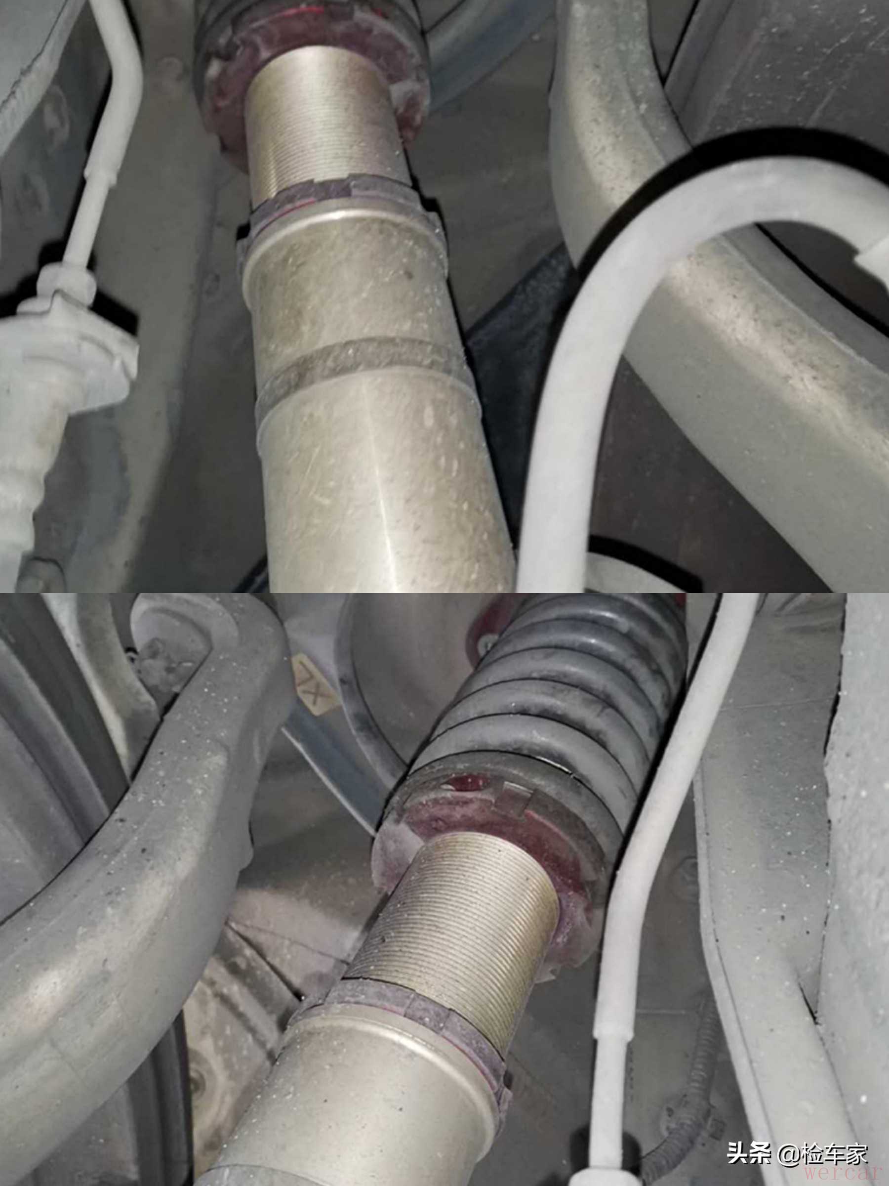 路试完就到了检测底盘这一步了,前后减震均有过更换,但这都属于正常磨损,有过更换也是正常现象,并不会影响到什么。