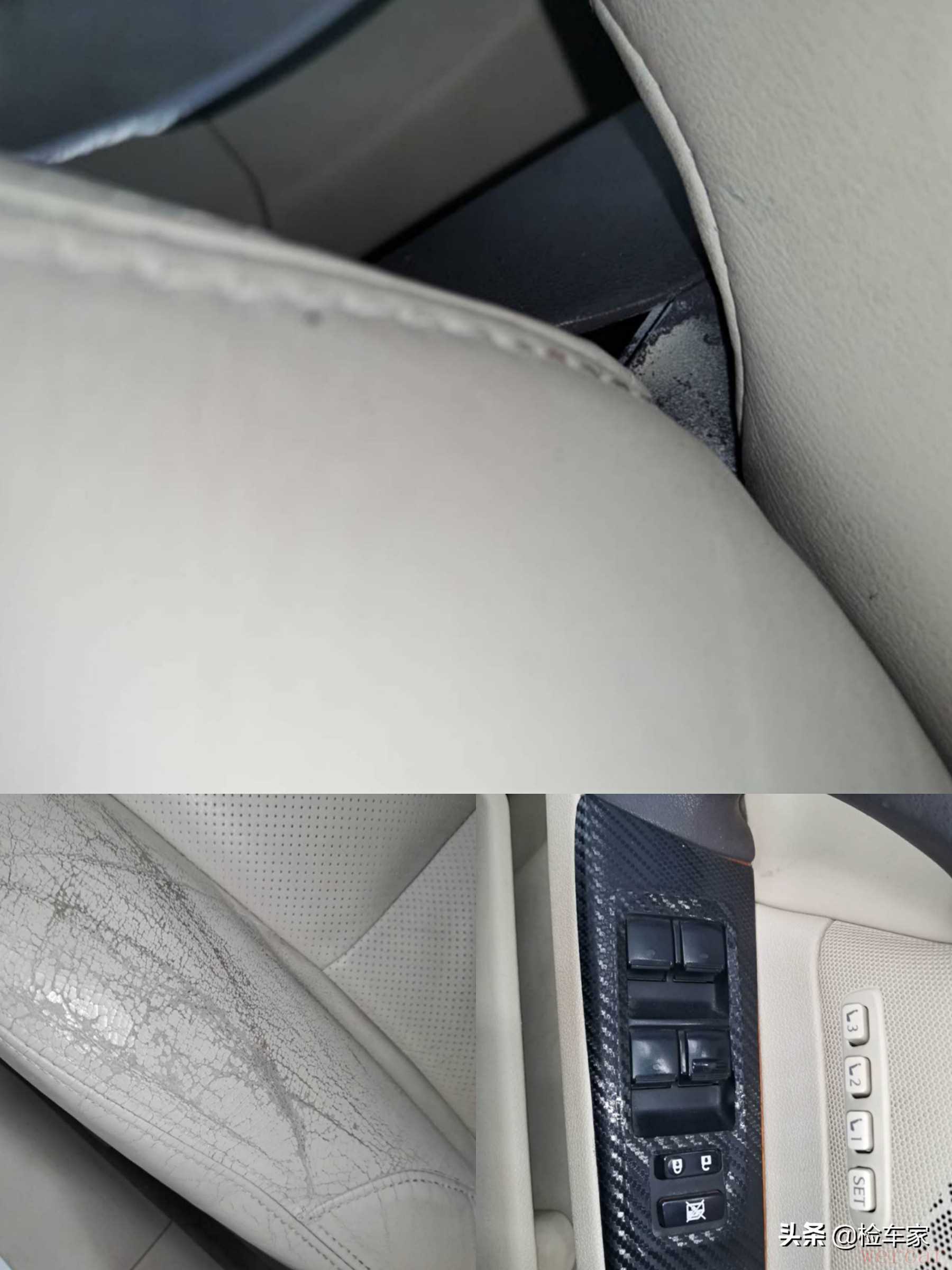主驾玻璃升降器开关磨损严重,多个按键标志都被磨损不见了,座椅真皮磨损严重且存在翻新,与车辆公里数有明显出入。车辆里程上面显示是17.7万公里。但光凭这些还不足以判定有调表,咱们接着往下看,继续找证据!