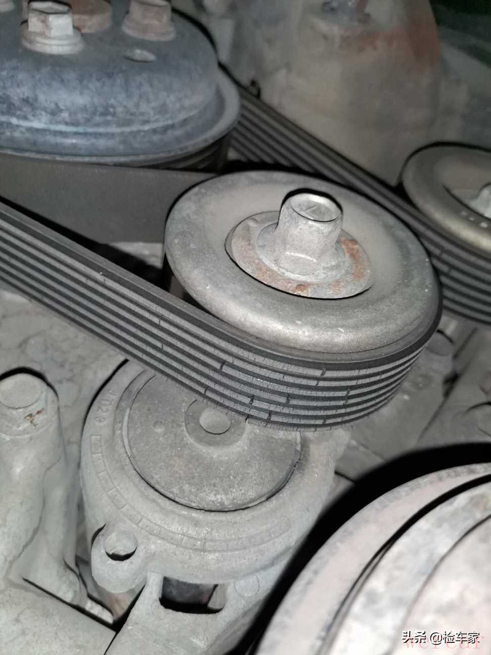 从这张图片可以明显看到发电机皮带老化严重存在开裂,需要及时更换皮带。