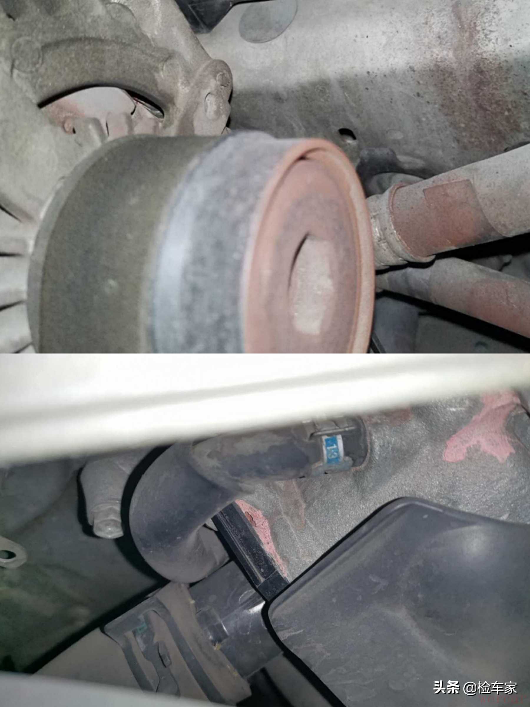 发电机轴承磨损严重,节温器座有漏水的现象,看来发动机这方面后期入手也是需要一番整备啊!毕竟车的年份上来了,大大小小的易损件毛病就都暴露出来了。