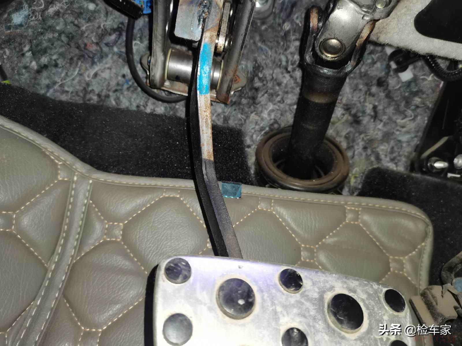 不过鉴于座椅已经用得变色了,还是得检查一下整车的磨损,可以看到方向管住无生锈的痕迹,刹车踏板的磨损正常。