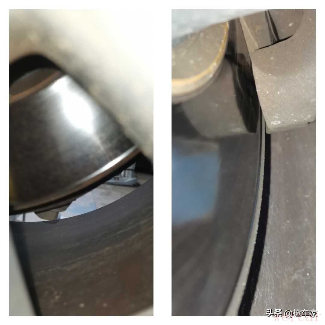 最后发现刹车盘的磨损有点偏大,仔细看了一下这套刹车片是更换过的,可能跟质量有关系,后期出于安全考虑还是建议直接更换一套好一点的刹车片。那到这里两个多小时的检测也就差不多结束了,我把检测到的情况一五一十地告诉了客户大哥。