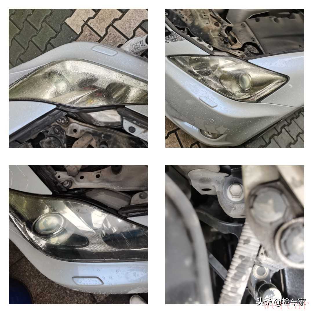 接着我一眼望去发现左右两边的大灯颜色都发黄了,然后看了下螺丝有拆装的痕迹,不过生产日期符合铭牌的出厂日期,10来年的大灯发黄也很正常。