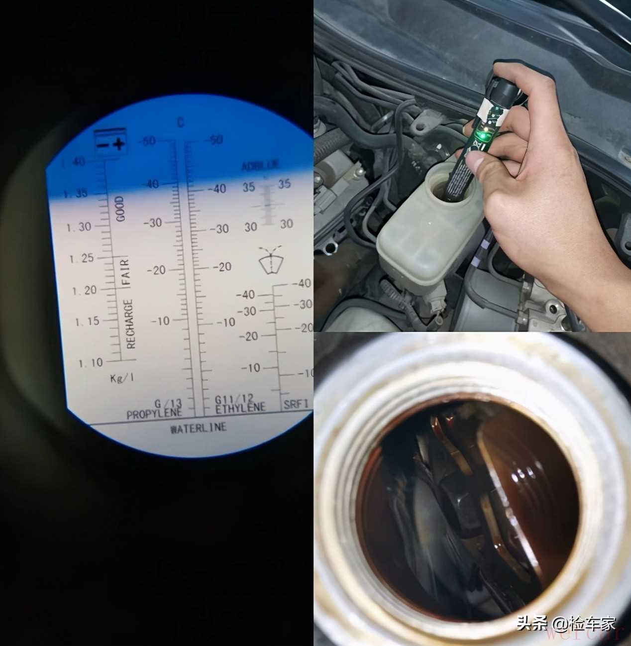 接下来检测全车油水,这方面没有问题,防冻液冰点在正常范围之内,但刹车油含水量偏高两个点,再用一段时间也需要更换了,发动机内部干净,看来原车主还是挺爱惜车的。发动机舱的检测基本上完成了,接下来我们对内饰进行检测。