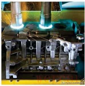 宝马B系列发动机和N系列发动机一样,采用了全铝曲轴箱,材料标号为AlSiMgCu0.5,和N20一样,气缸内没有使用钢制的缸套,而是使用了LDS涂层,这种工艺就是将具有良好导电性的金属丝进行加热然后通过高压将溶液喷涂到气缸套上(如图9),该铁质材料非常耐磨,只有0.3mm,可以将燃烧室热量传递给曲轴箱。