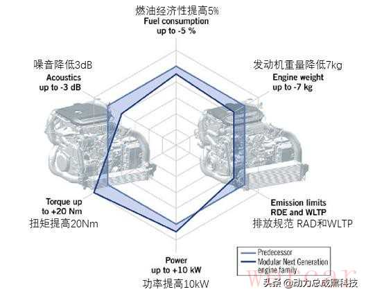 与N系列相比,B系列的重量减少了7公斤。虽然热管理模块和分流式冷却增加了重量,但是通过集成排气歧管、曲轴优化、曲轴箱优化等措施进行了轻量化,从而实现了总体重量的降低。