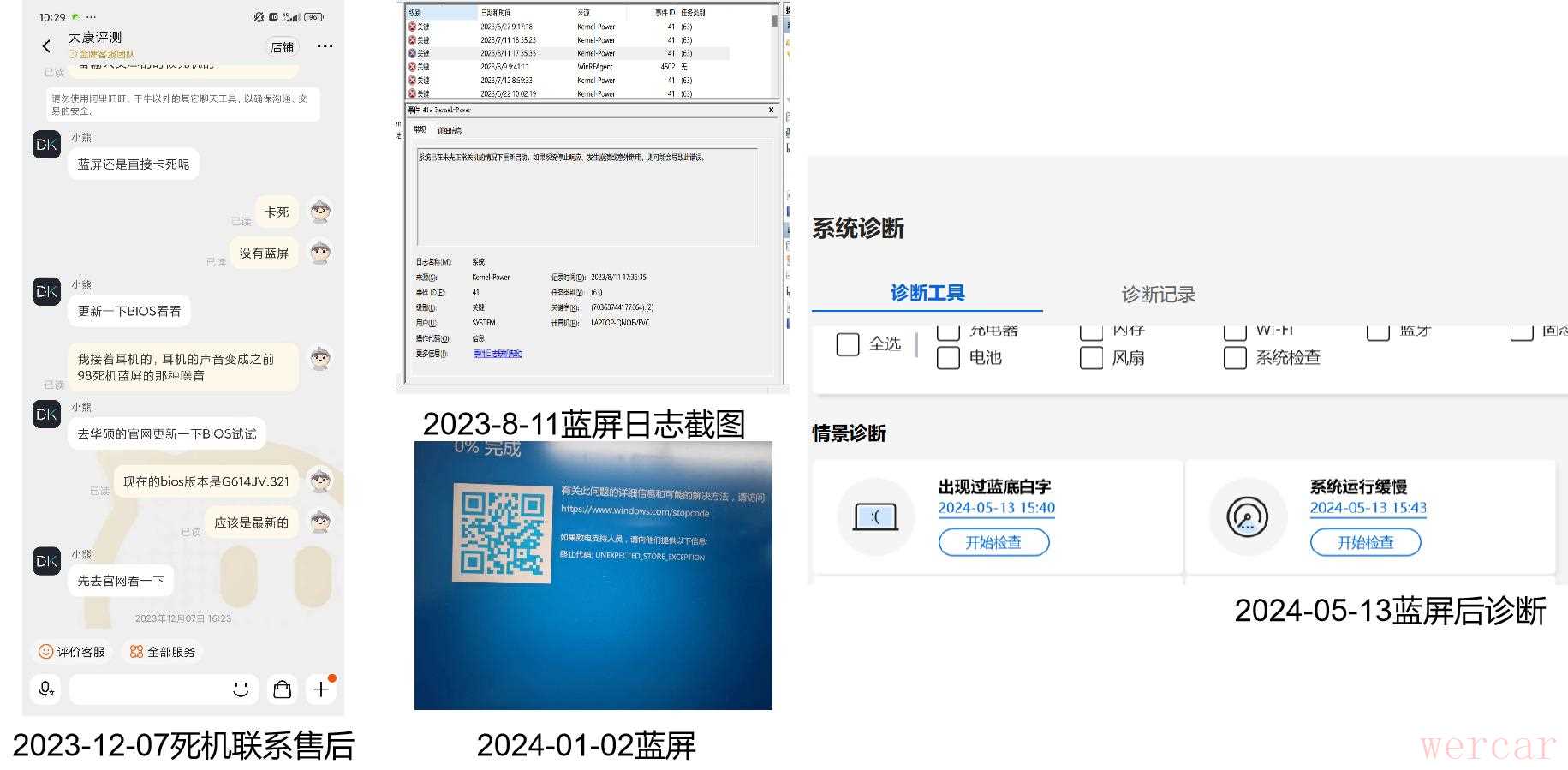 可查的死机和蓝屏记录,没算最开始拿到机器玩游戏黑屏的情况