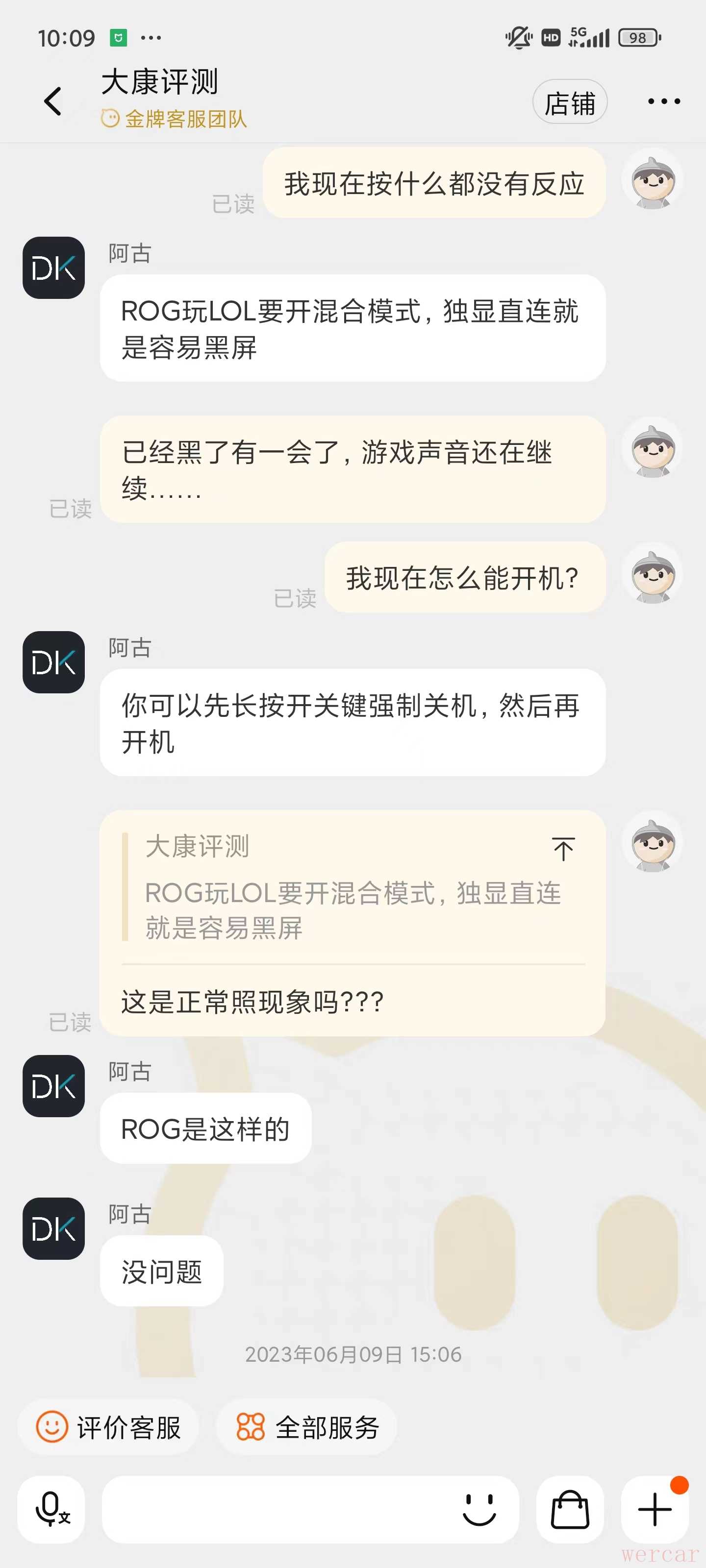 这是大康家售后给我的回复,我当时真的是为售后的回复所震惊。。。后来查了下,确实有这情况。。。真是"尊贵"的ROG !