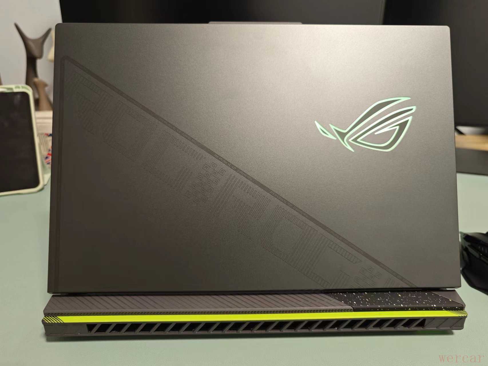 说实话,枪神7的外观可能更符合年轻人的审美,不太适合我这种中年社畜。A面金属磨砂的手感,B/C/D面都是处理细腻的塑料,尾部带着绿色的小翘臀(闪亮、扎眼)。D壳还带着赛博朋克的风格的印花设计,时尚感拉满。拉风的造型带来的影响就是开会的时候,领导都会多看一眼你这个骚包的机器