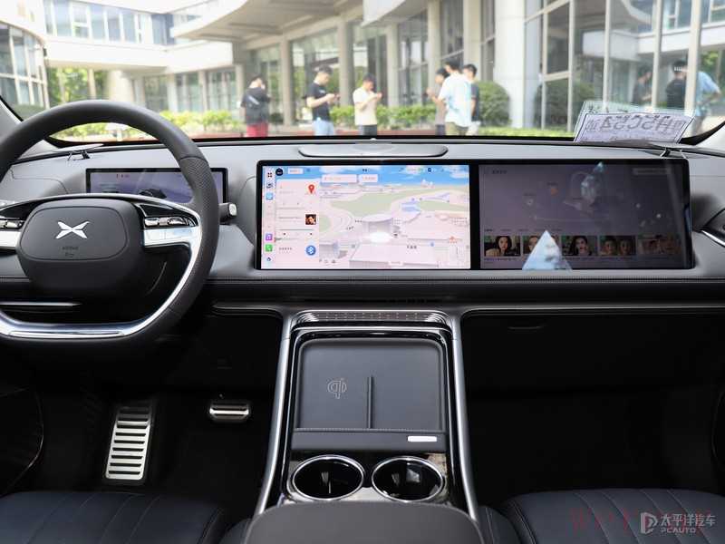中控台部分还有一点需要提升的,那就是无线充电板,小鹏G9在屏幕下方布置了两个放手机的斜面储物格,但只有驾驶员一侧配备无线充电功能,而且15W功率的无线充电在如今看来也拿不出手。