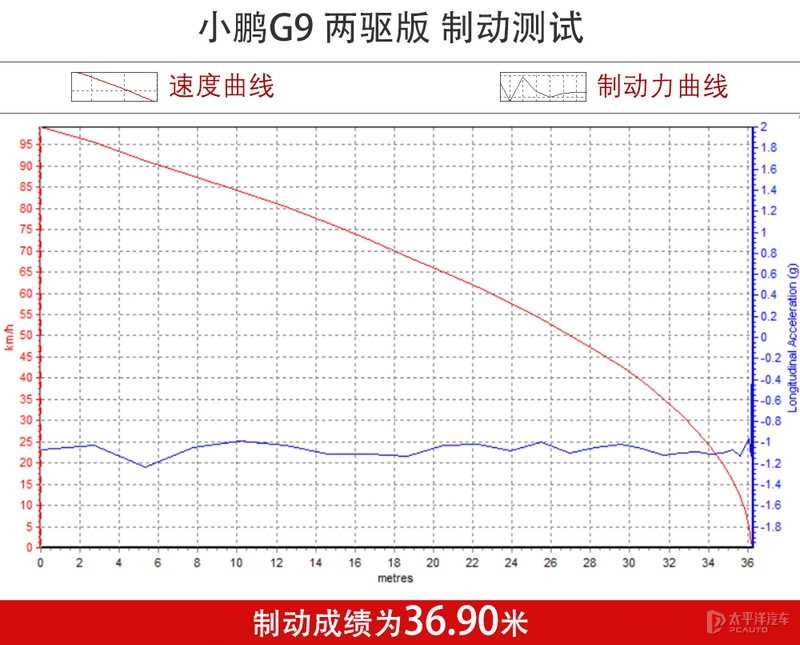 小鹏G9两驱版的整备质量为2205kg,要知道这样的体重已经赶上了宝马X5,但在强大的制动系统帮助下,两驱版实测100-0km/h制动测试只要36.90米。