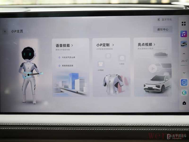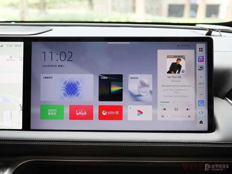 但相比大家熟悉的小鹏P7、P5,G9中控屏的主页融合了更多的界面以及功能,说白了就是将更多功能放到主页里面,虽然操作便捷性提高了,但看起来略显凌乱,上手时间也更长一些。