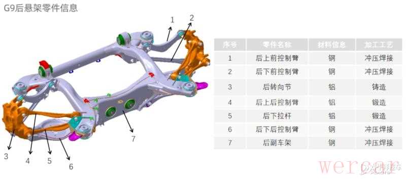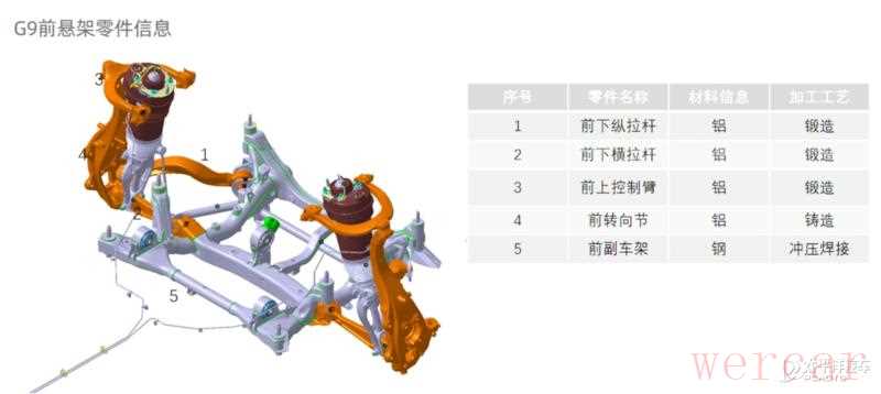 两驱版车型采用的是传统机械悬架,从机械结构来说,小鹏G9前双叉臂、后五连杆式独立悬架,悬架部件还用上了大量铝合金材质,整个底盘的底子并不差。