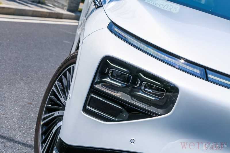 车头两侧的激光雷达巧妙隐藏在大灯组下方,相比某些车型将激光雷达布置在车顶长出犄角的审计,这种将科技与设计美感融合方案,相信更容易被大家接受。
