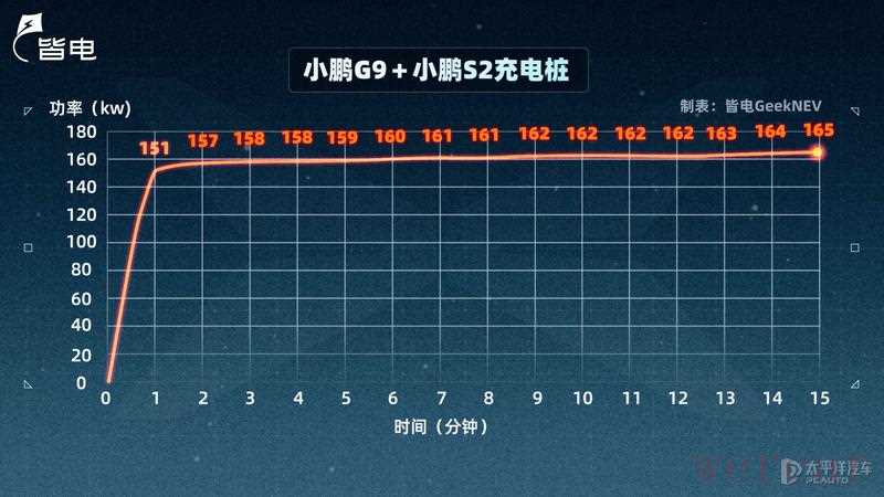 那如果用第三方充电桩,不能效率会不会大打折扣?我们使用第三方充电桩给G9充电44kWh的电量,充电功率一直稳定在150-160kW左右,充入44kWh的电量用时为18.25分钟,要知道小鹏G9的电池容量为98kWh,18分钟就能完成44%的补能,充电速度确实相当迅速。