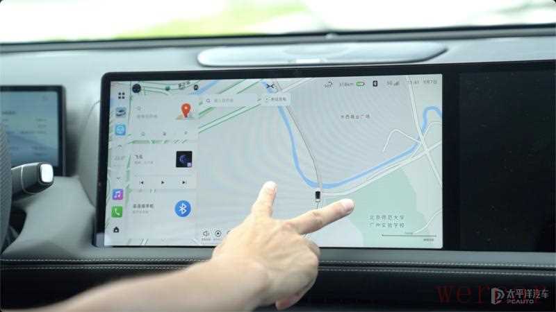 有了高通8155芯片加持,切换页面时除了有动画加持外,流畅性也比小鹏P7来得更好,5G通信模块的出现也让网络响应更快,这点在地图加载、缩放的时候尤为明显,反应速度快上了一个档次。